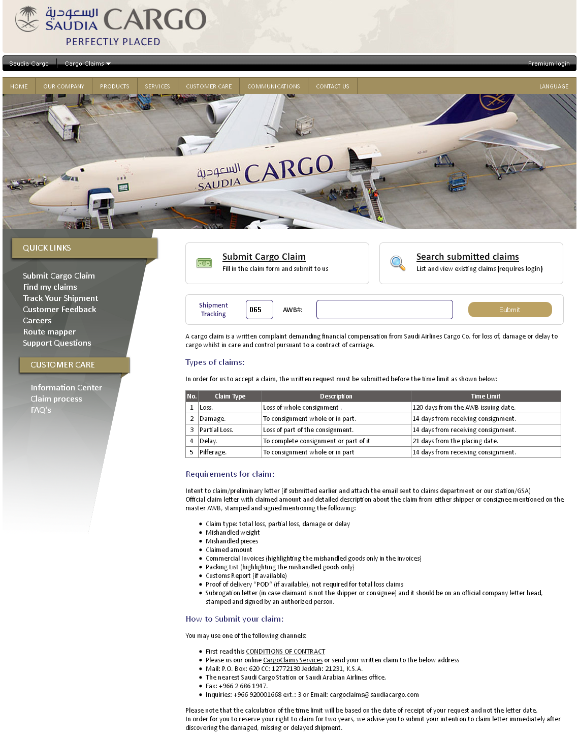 Taha Al-Maimani, the Manager of Customer Care Center explains. “Our commitment to customer satisfaction is second to none. With a wide range of products and services specifically tailored to meet the varying requirements of our customers, we are able to provide a high level of service whilst continuing to deliver cost-effective solutions. It goes without saying that our commitment to provide excellent customer satisfaction also includes the area of cargo claims handling. In order to meet the highest industry standards on customer expectations in regard to the recovery of cargo claims we have adapted the Cargo Claims platform within our service program. We believe that an efficient and transparent cargo claims handling process will contribute to an improved customer experience and therefore are please to announce the launch our claims handling portal integrated within our website www.saudiacargo.com/claims “.