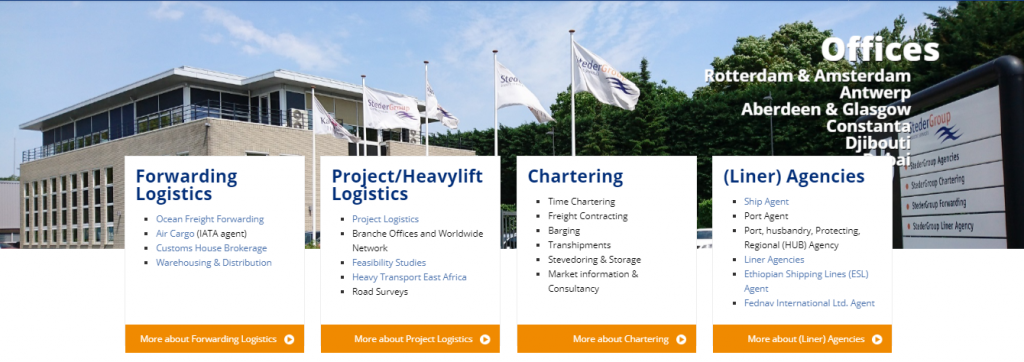 The head office of Steder Group is located in near Rotterdam, the Netherlands. The office is located directly on the main road to the port of Rotterdam and are therefore very easy to reach with various means of transport. Steder Group has grown considerably in recent years. You will find their branches worldwide with offices in Rotterdam, Amsterdam, Antwerp, Constanta, Bucharest, Cluj, Ploiesti, Orsova, Dubai, Djibouti, Glasgow, Aberdeen and Singapore.